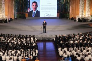 慈濟50周年式典にて、證嚴上人は台湾総統 馬英九氏より「淑世濟度」と書かれている扁額が贈られた。また、アメリカ国土安全保障省のマイエス(David L. Myers)がアメリカ・オバマ大統領の祝辞を代読。
